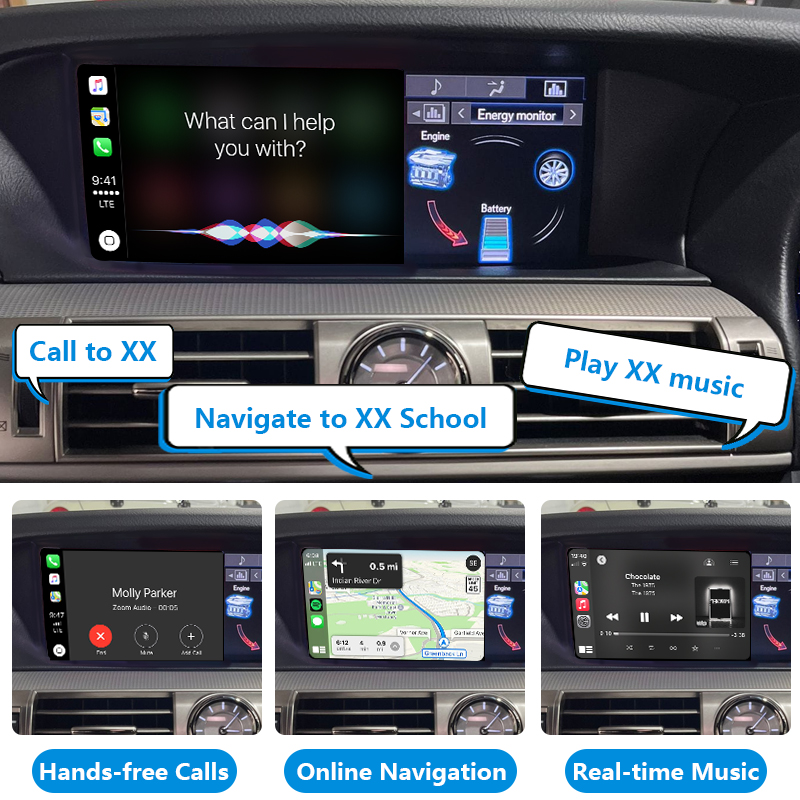 • Upgrade your Lexus LS with seamless Apple CarPlay and Android Auto functionality — fully integrated with your original head unit, whether you have the standard Lexus audio system or the premium Mark Levinson setup.