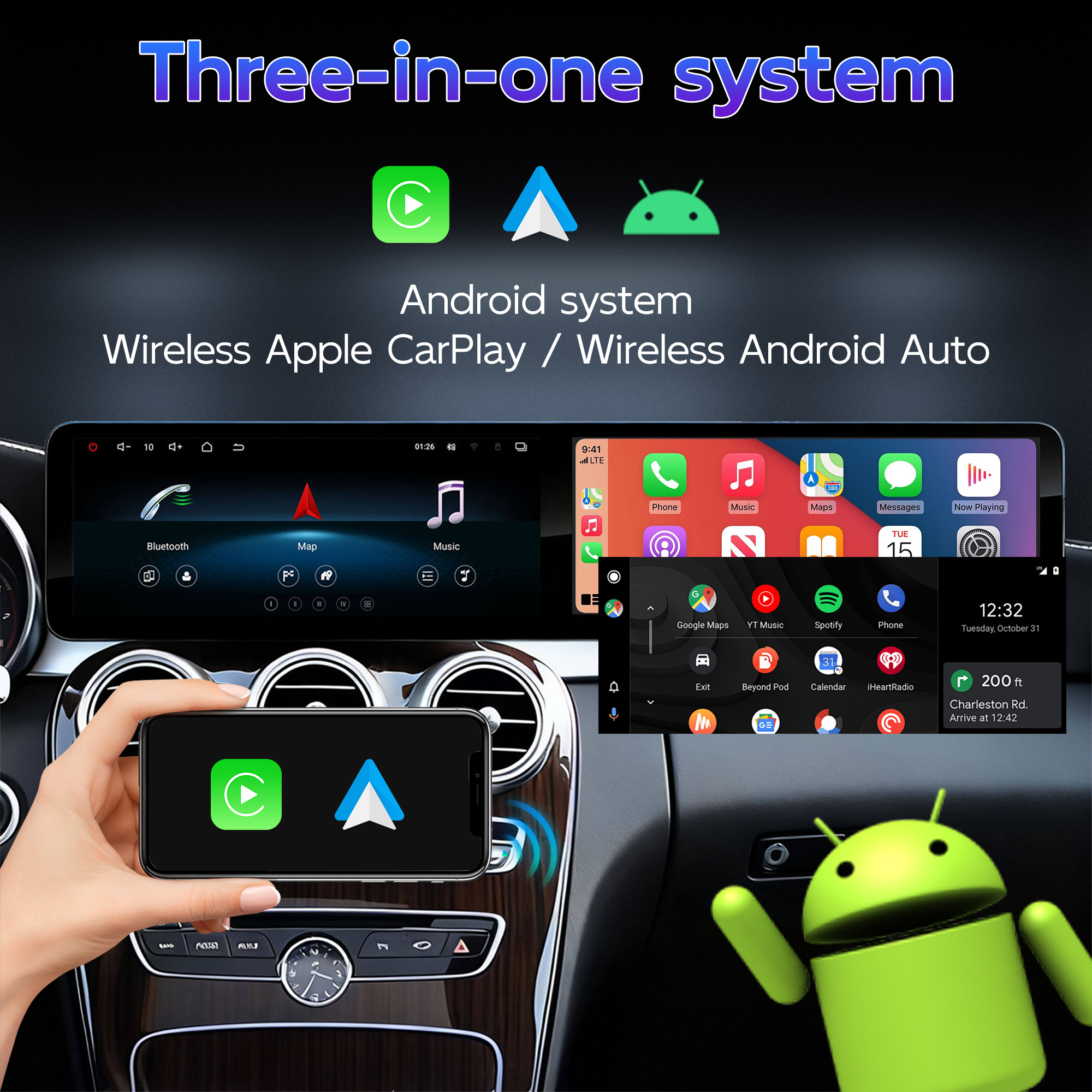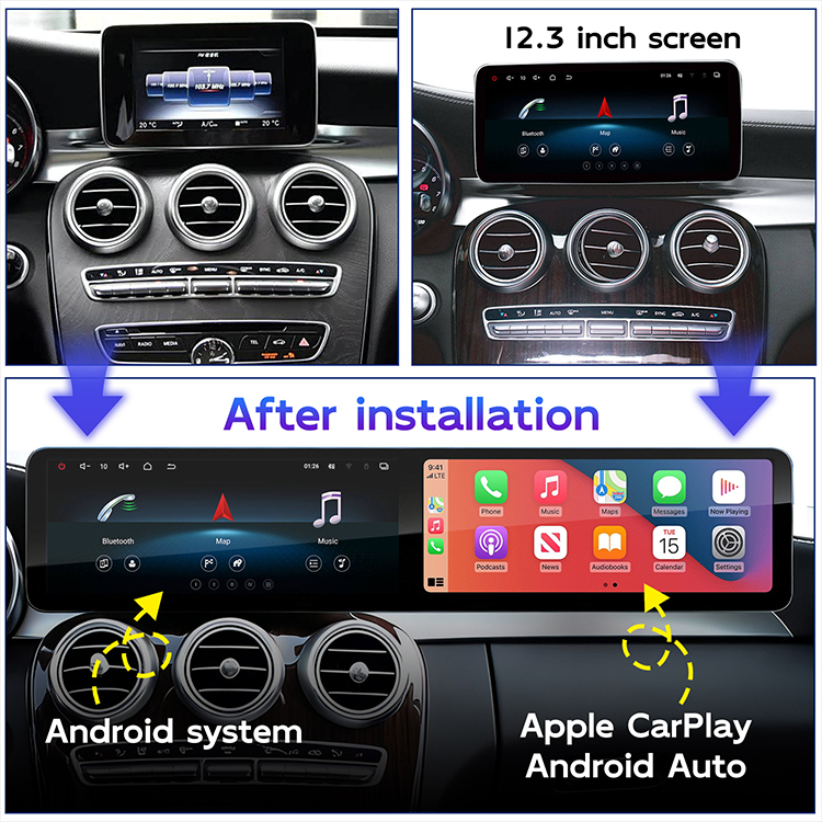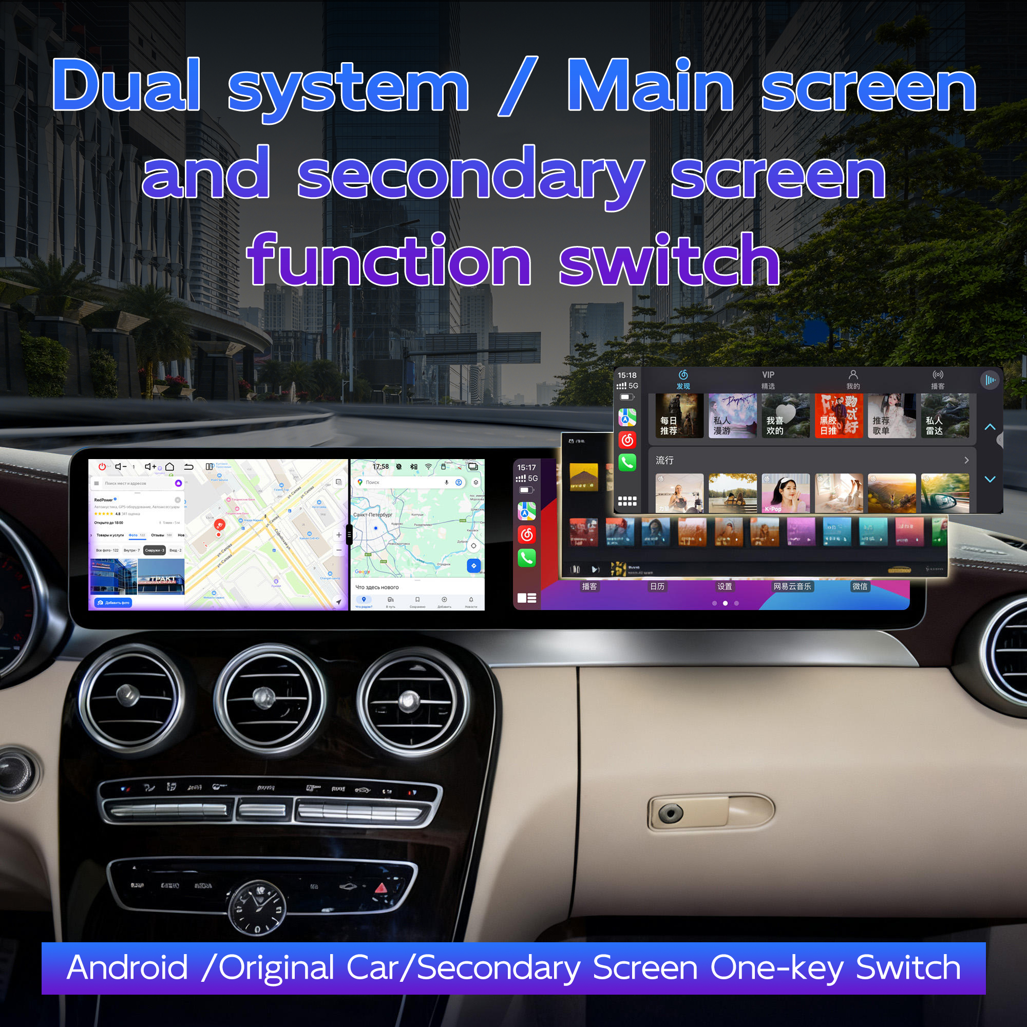 2015-2020 Mercedes Benz C GLC Class W205 X253 12.8 Inch Dual Screen Qualcomm Chip Android Car Screen CarPlay Android Auto