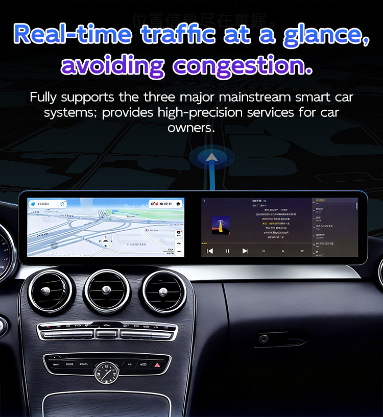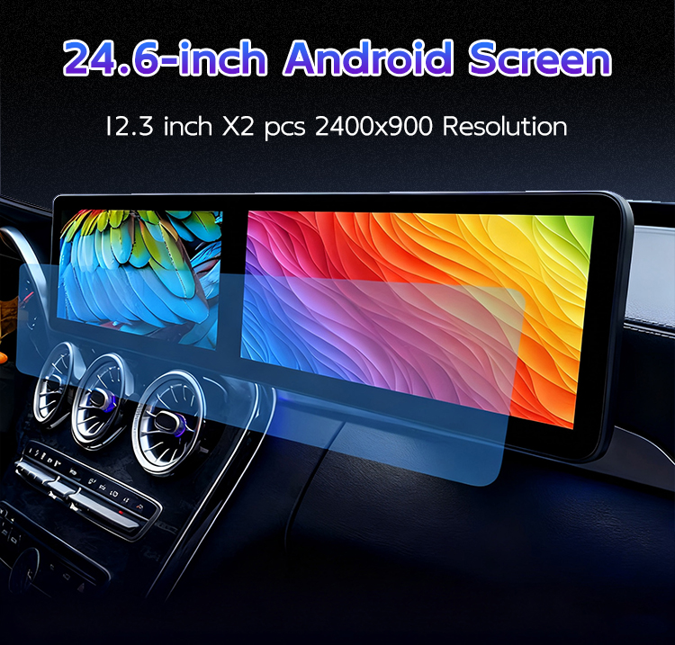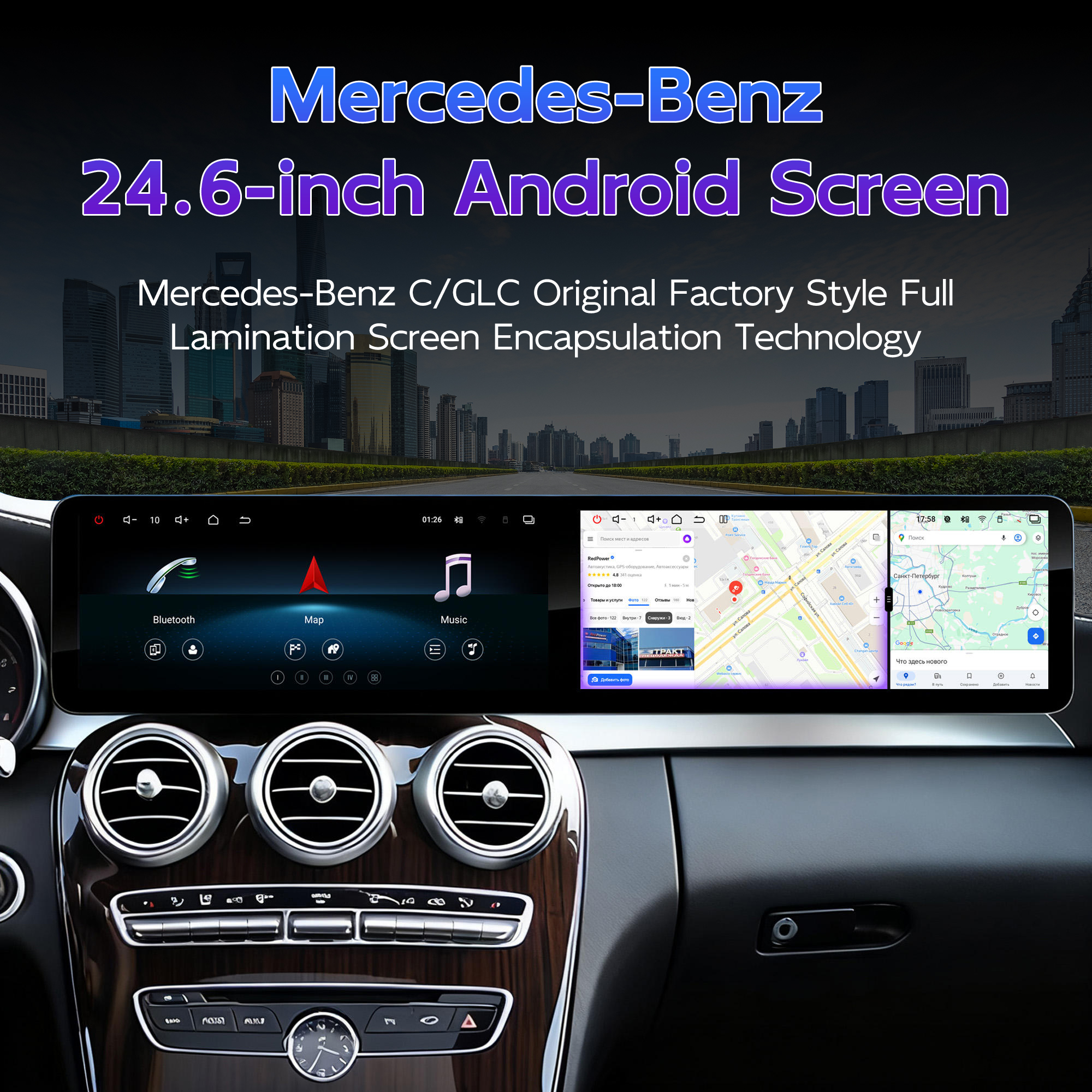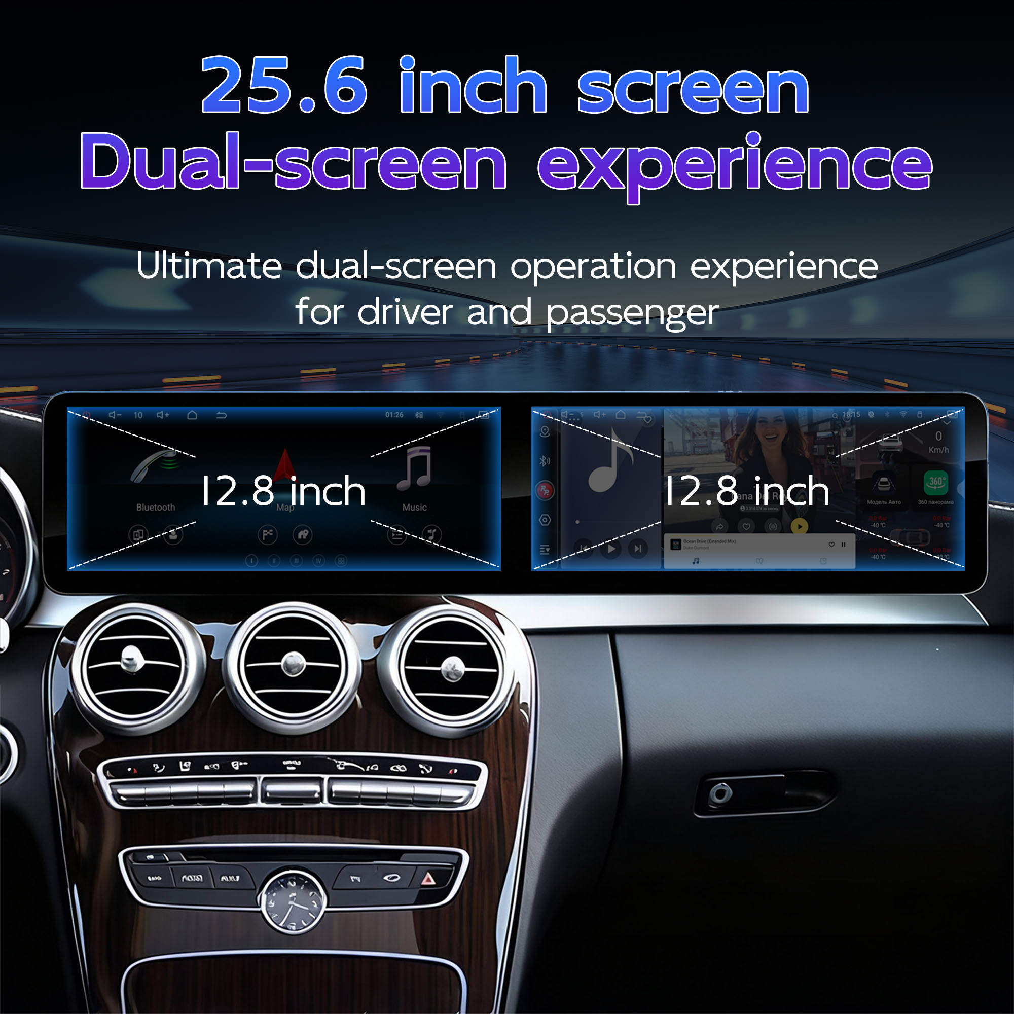 25.6-inch dual screens suitable for 2015-2020 Mercedes-Benz GLC C-Class W205 X253, Qualcomm 6125 & 6225 chips, 2400*900 resolution, supports both left and right sides