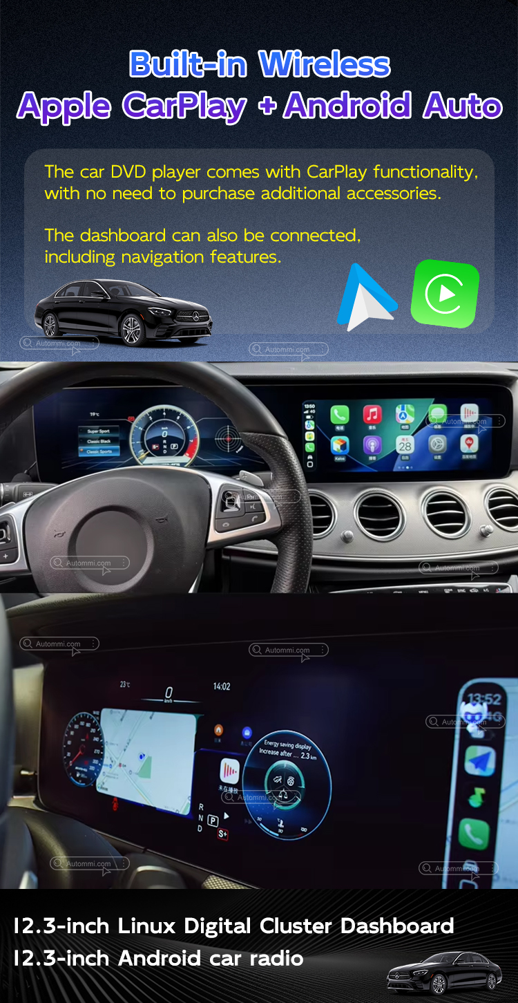 – Built-in wireless CarPlay+auto,with iPhone via WiFi and with Android Smartphone via USB or WiFi.