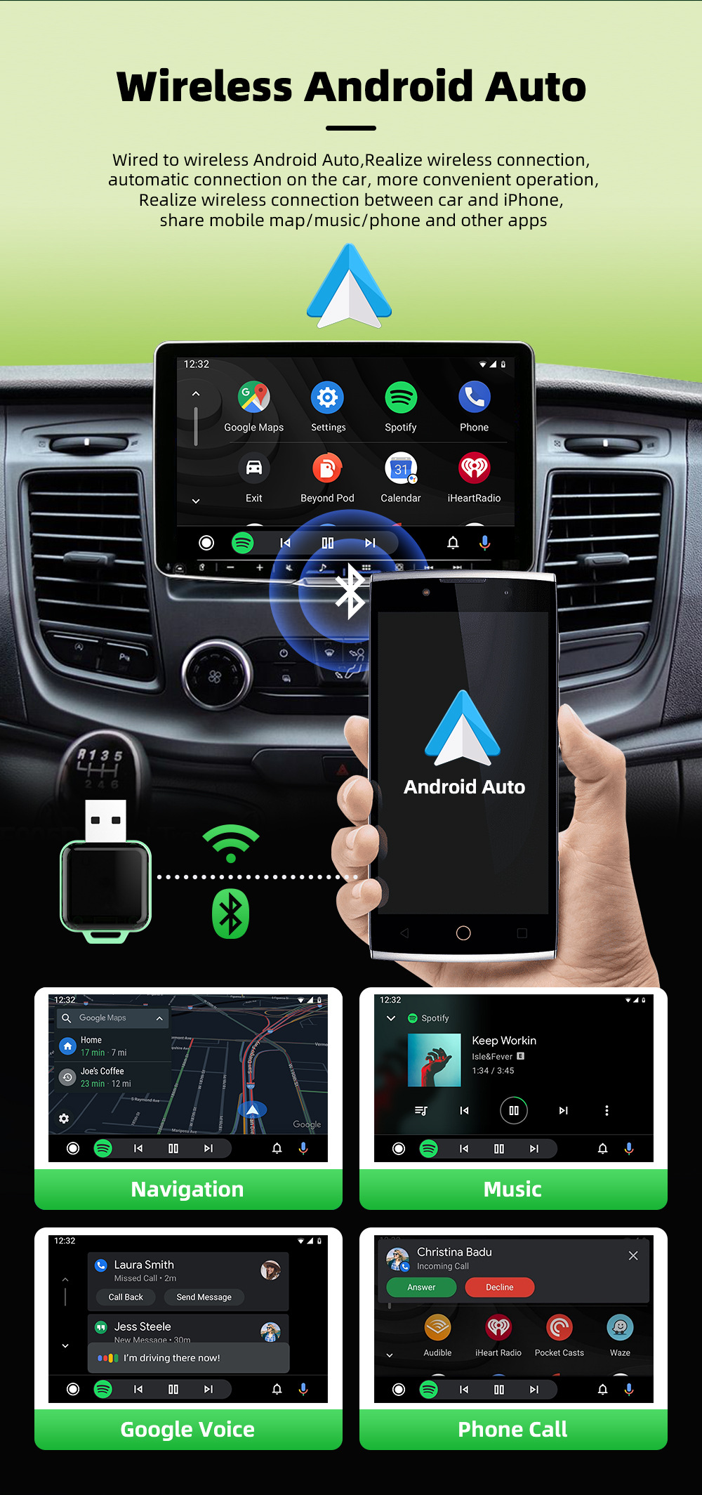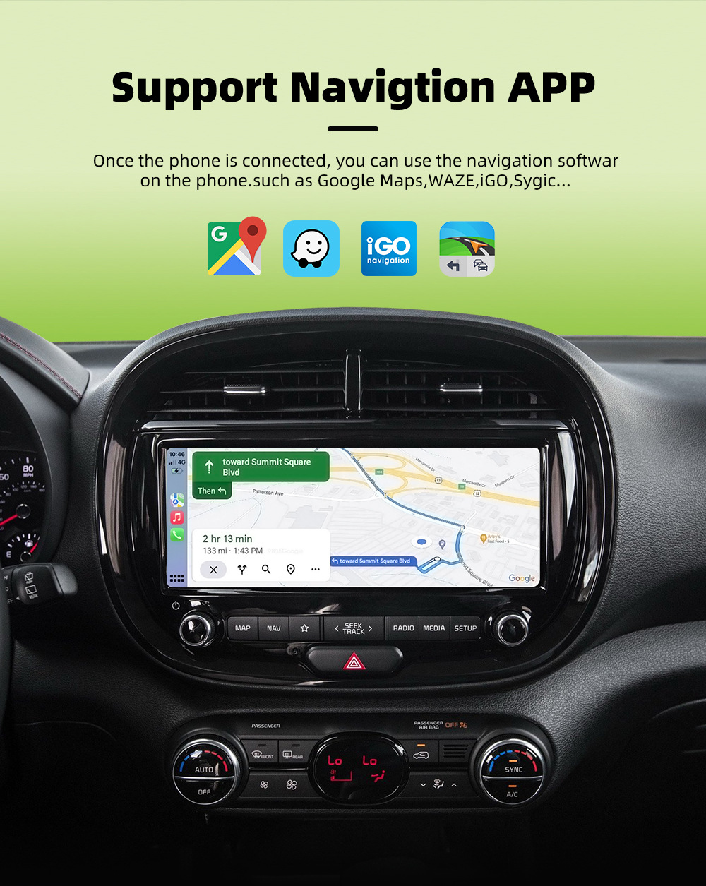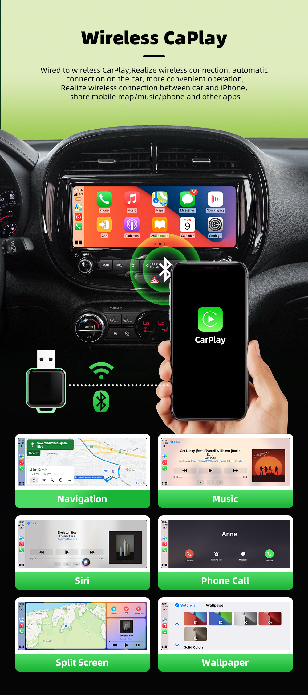✔ Play your music, map your route, or safely use phone and text functionality on Apple CarPlay & Android Auto without the need of annoying cables.
