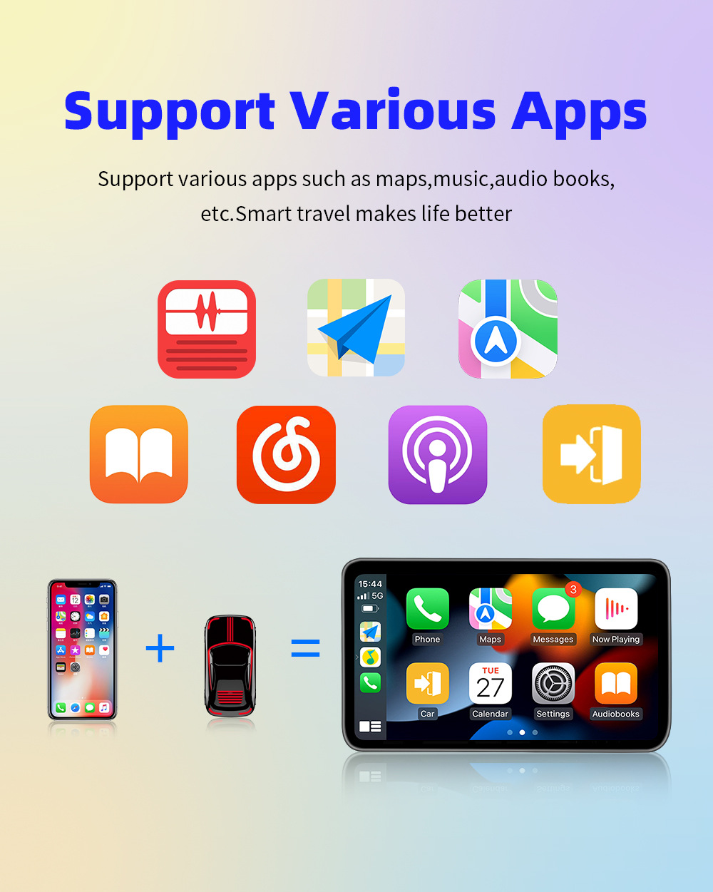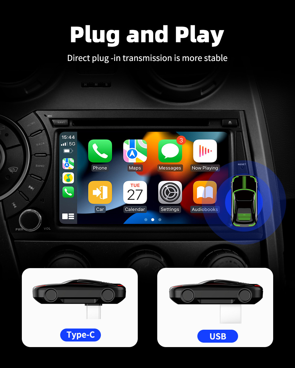 ✔ Play your music, map your route, or safely use phone and text functionality on Apple CarPlay & Android Auto without the need of annoying cables.