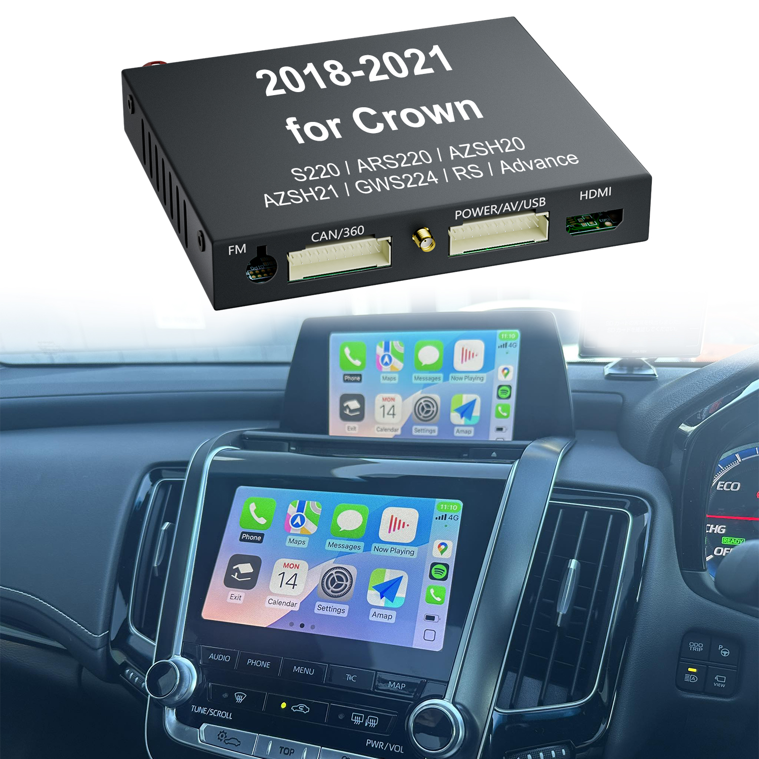 - Upgrade your Toyota Crown with OEM-grade Apple CarPlay, Android Auto, and Huawei CarLife — fully integrated with your factory display and controls.