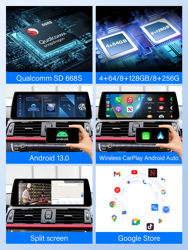 Upgrading your BMW's original screen to an Android car screen allows for the coexistence of two systems. While retaining the core functions of iDrive, it unlocks a modern smart car experience, bringing four core values: expanded functionality, enhanced interaction, improved connectivity, and upgraded hardware. It is especially suitable for upgrading older models.