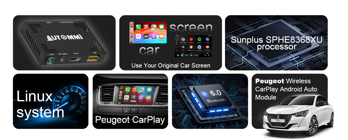 Use your existing Peugeot screen to support CarPlay and Android Auto while maintaining the original look and feel of your vehicle's interior.